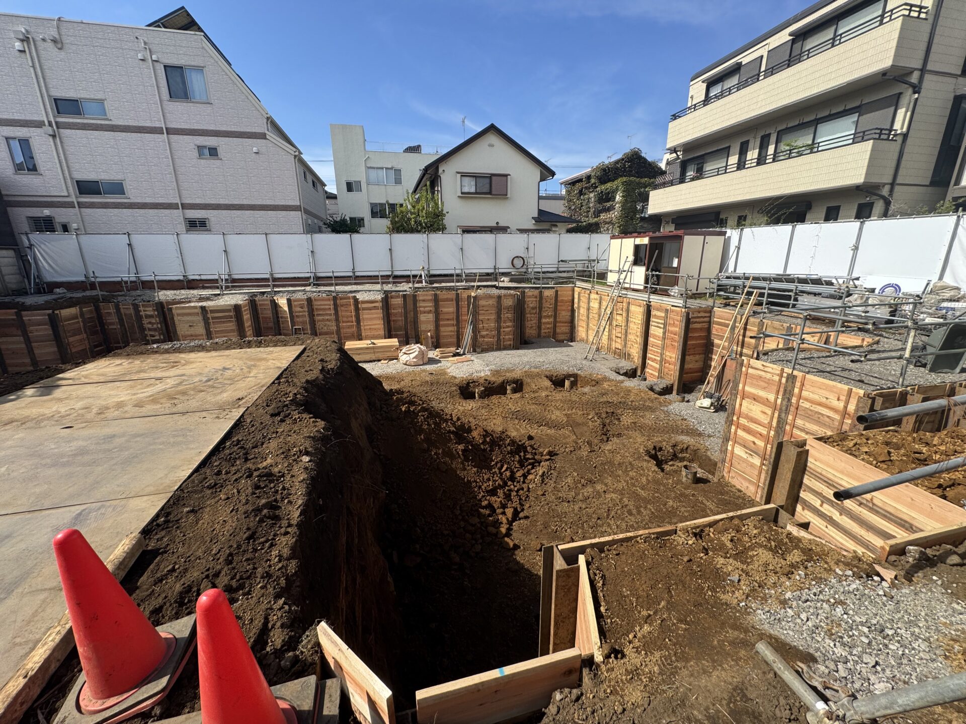 今回は隣地のコインパーキングを全て借りられ、そこを使ってレッカーを据えて荷下ろし等できましたが、借りることが出来なかったときは目の前の通りを通行止めし、さらに明治通りを車線規制して70トンラフターを使って作業することになっていました。